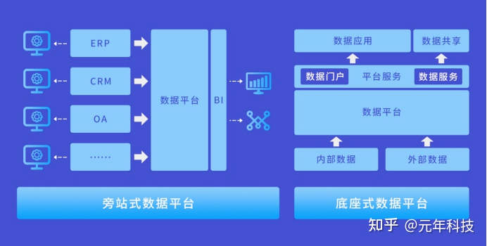在数据平台建设上,早期的观念还是离不开数据仓库,普遍的做法是搭建大数据技术平台,在此基础上建设数据仓库。但在大数据环境下,数据仓库的不足也逐渐暴露。传统数据仓库的主要作用是探索并挖掘数据价值,为企业高层决策提供依据。进入数字化转型阶段,数据的作用被进一步发掘,除了数据分析外,用户画像、精准营销、数字化运营、数字化管理等应用场景都构建在数据平台的基础上。数据平台由“旁站”式向“底座”式转变。在人工智能、大数据等技术发展和企业数字化转型加速的双重驱动下,2019年,数据中台在众多赛道中脱颖而出,成为行业焦点。